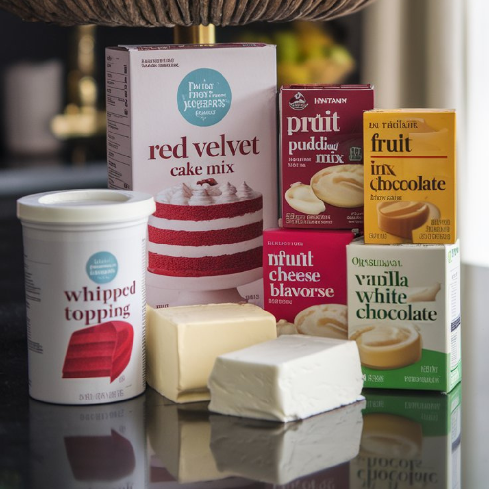 Sprinkle red velvet crumbs or cocoa powder on the top layer. Add fresh strawberries for a festive touch.